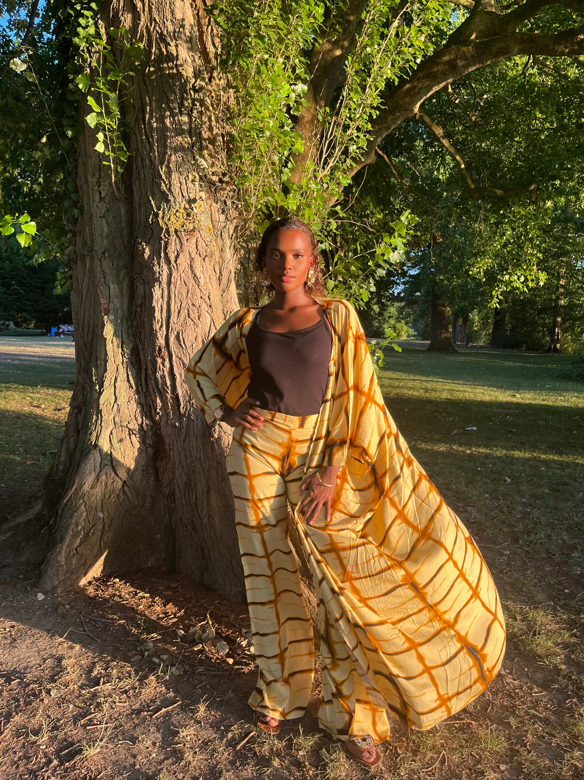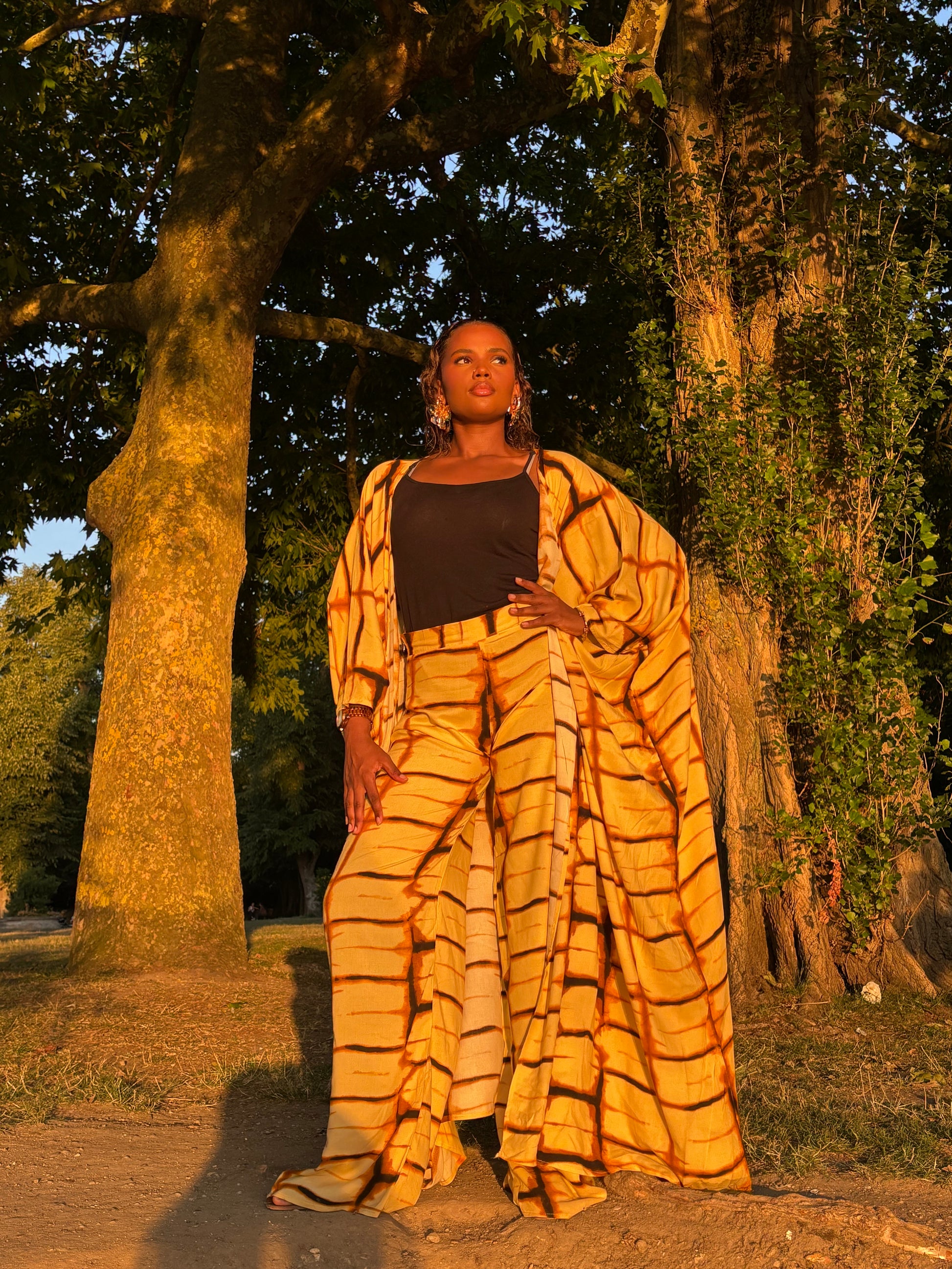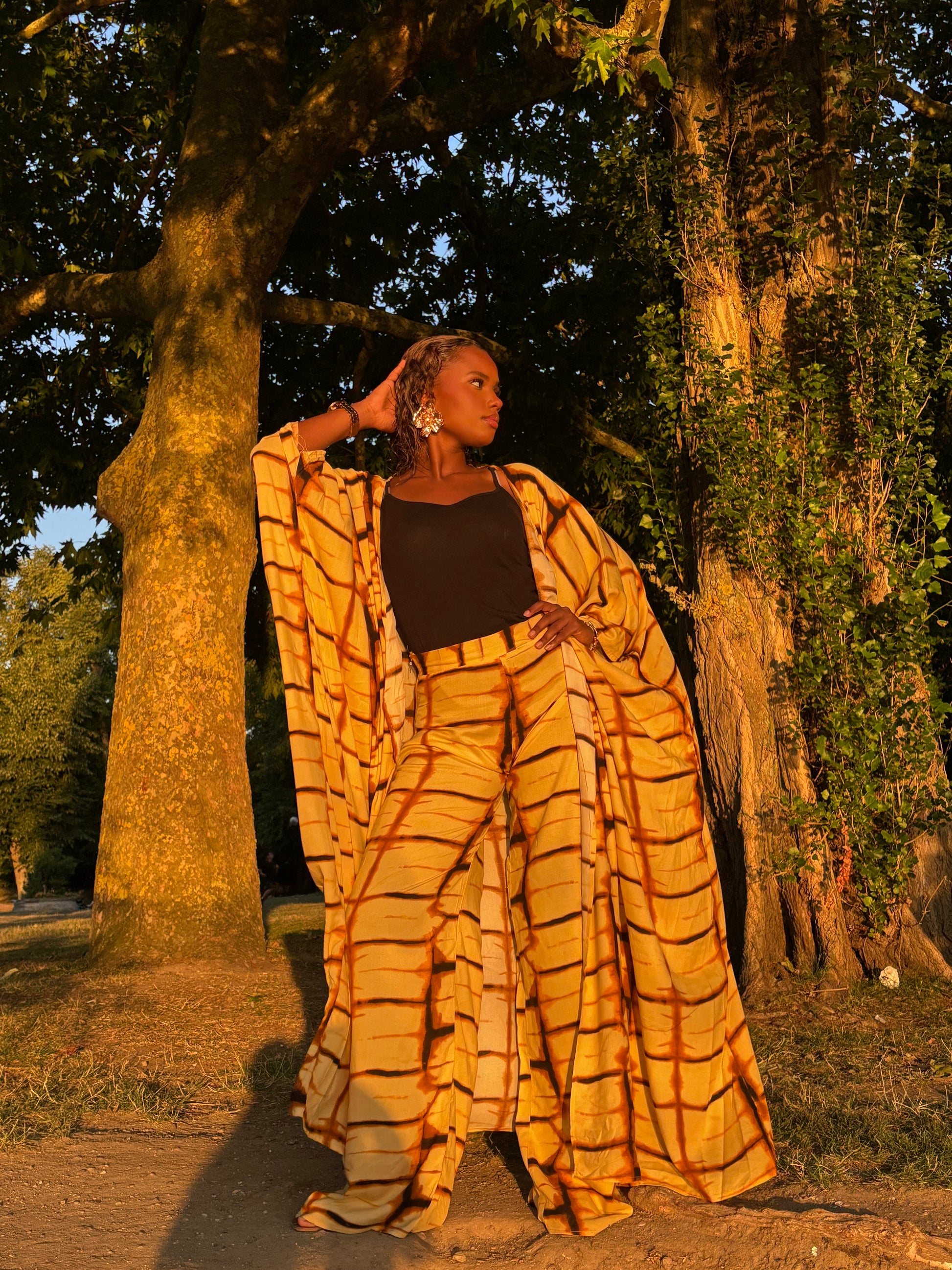 Le Kimono Anta est un deux pièces fluide inspiré du melfah. Sa couleur marron en fait le choix parfait pour un été ensoleillé, que ce soit à la plage ou pour une sortie. Profitez d'un look élégant et tendance avec ce kimono polyvalent.