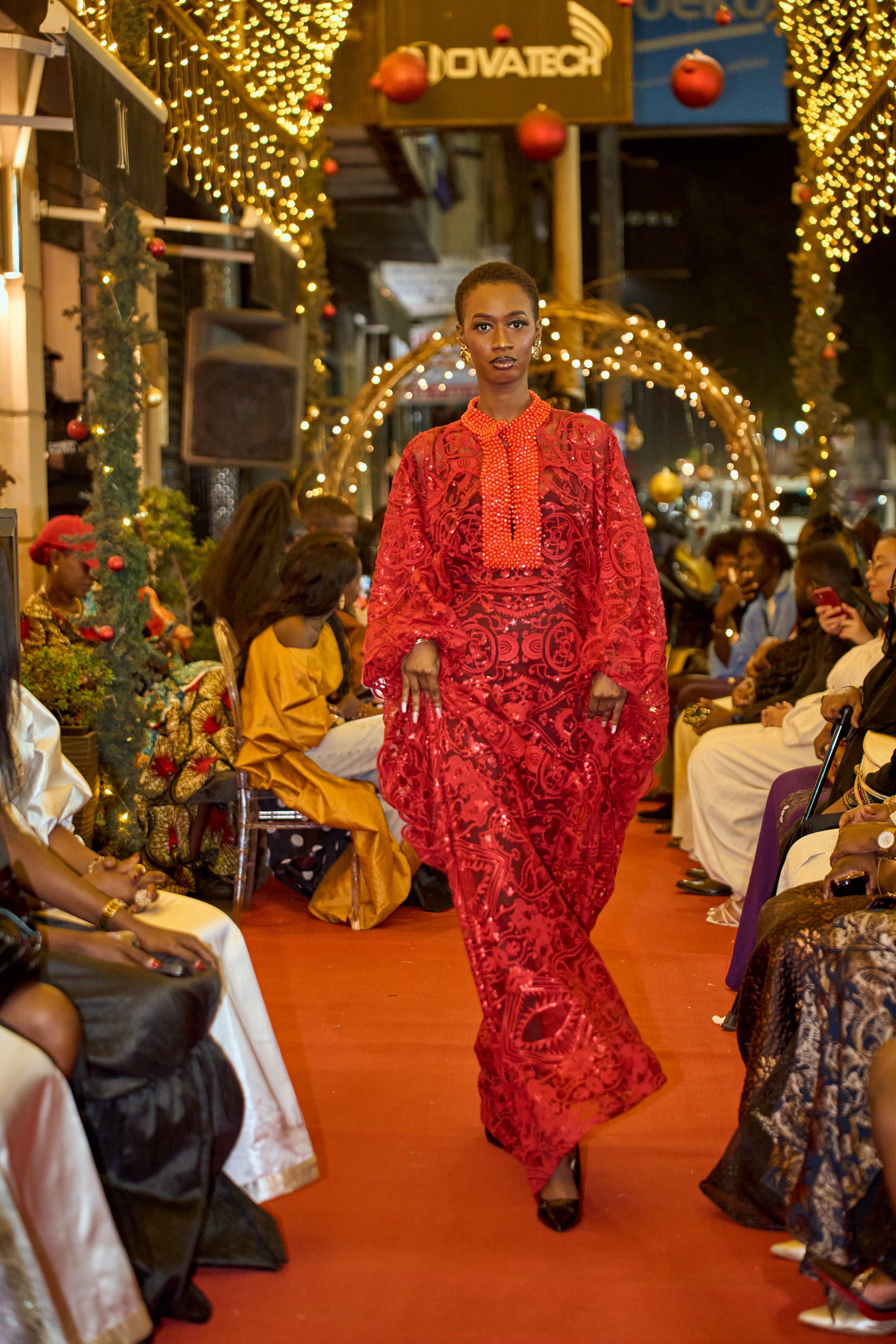 Découvrez cette robe en dentelle rouge brillante, à la fois élégante et raffinée. Son col perlé, travaillé avec soin, met délicatement le visage en valeur. Cette dentelle brillante, aux reflets subtils, épouse la silhouette avec harmonie tandis que les perles apportent une touche lumineuse à chaque mouvement. Idéale pour les événements importants, cette robe vous accompagne avec style et assurance. Une pièce intemporelle qui allie tradition et modernité.