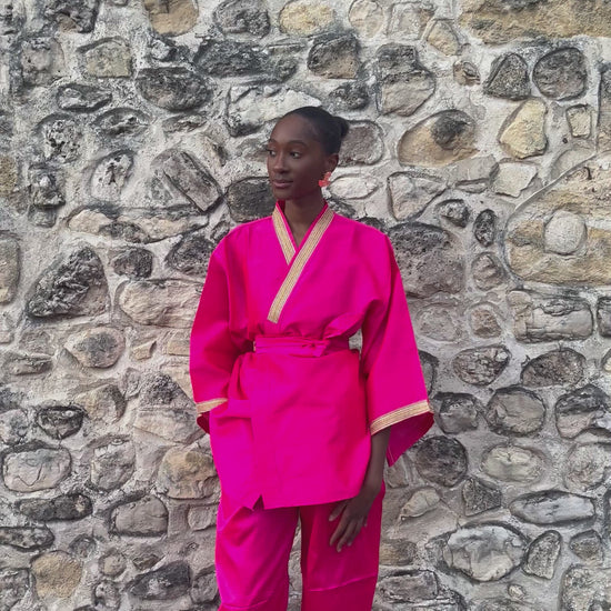 Cet ensemble kimono rose, avec ses broderies artisanales, est un indispensable pour l'été. Son style streetwear chic et sa légèreté en font un choix frais et élégant. Parfait pour les journées ensoleillées, il vous apportera confort et style.