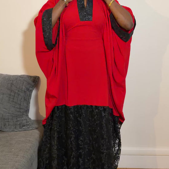 Boubou en crêpe rouge avec sequins noirs
